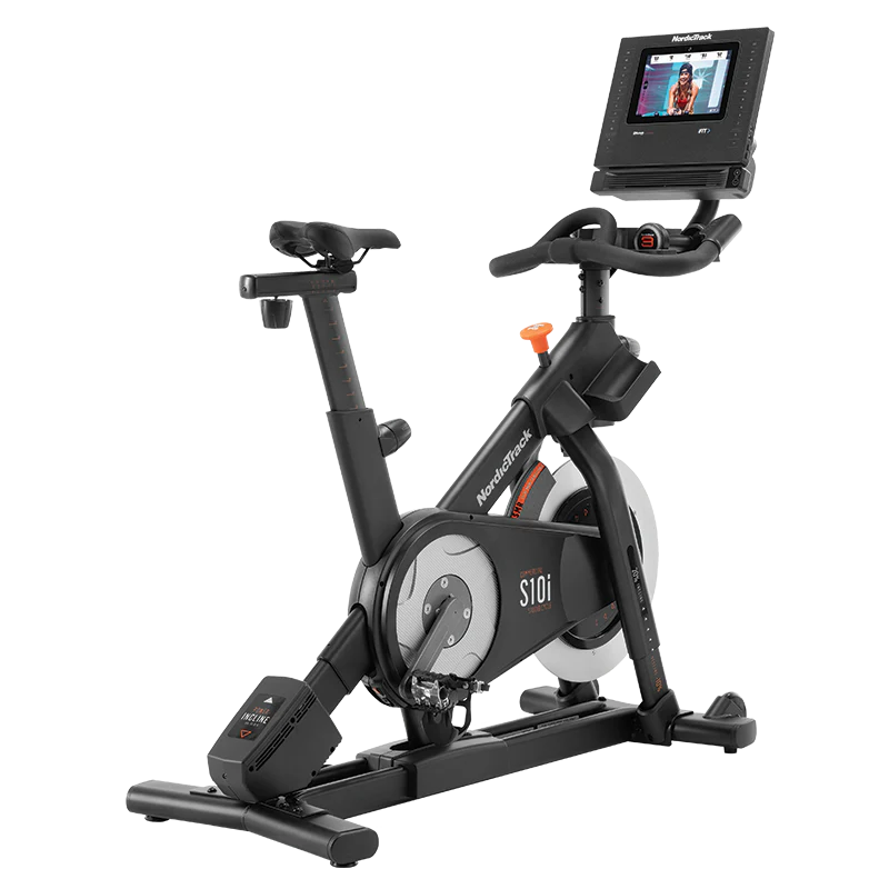 Workout smarter with the NordicTrack S10i Studio Cycle. Boasting a Power Grade incline/decline drive system. Also a 10″ display, SMR Silent Magnetic Resistance and a comfortable, ergonomic padded saddle.